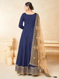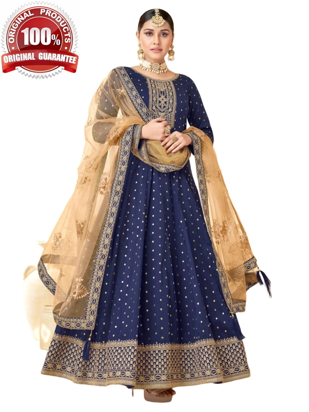 ✪ This Anarkali dress can be stitched with maximum bust size of 42 inches only.- Top: Embroidery on Art Silk Jacquard