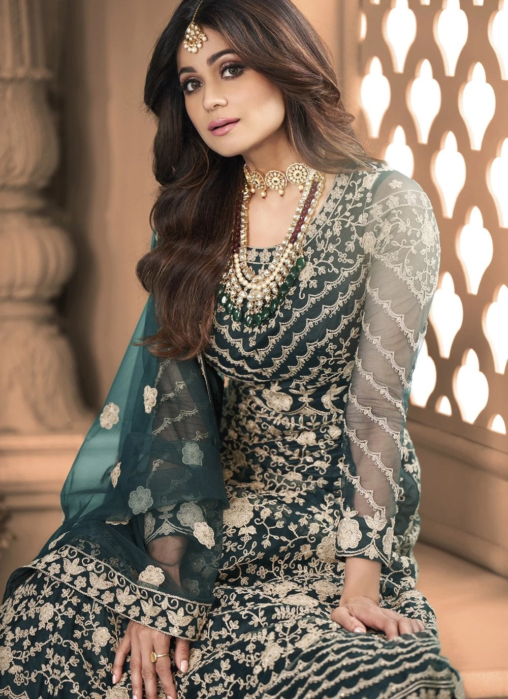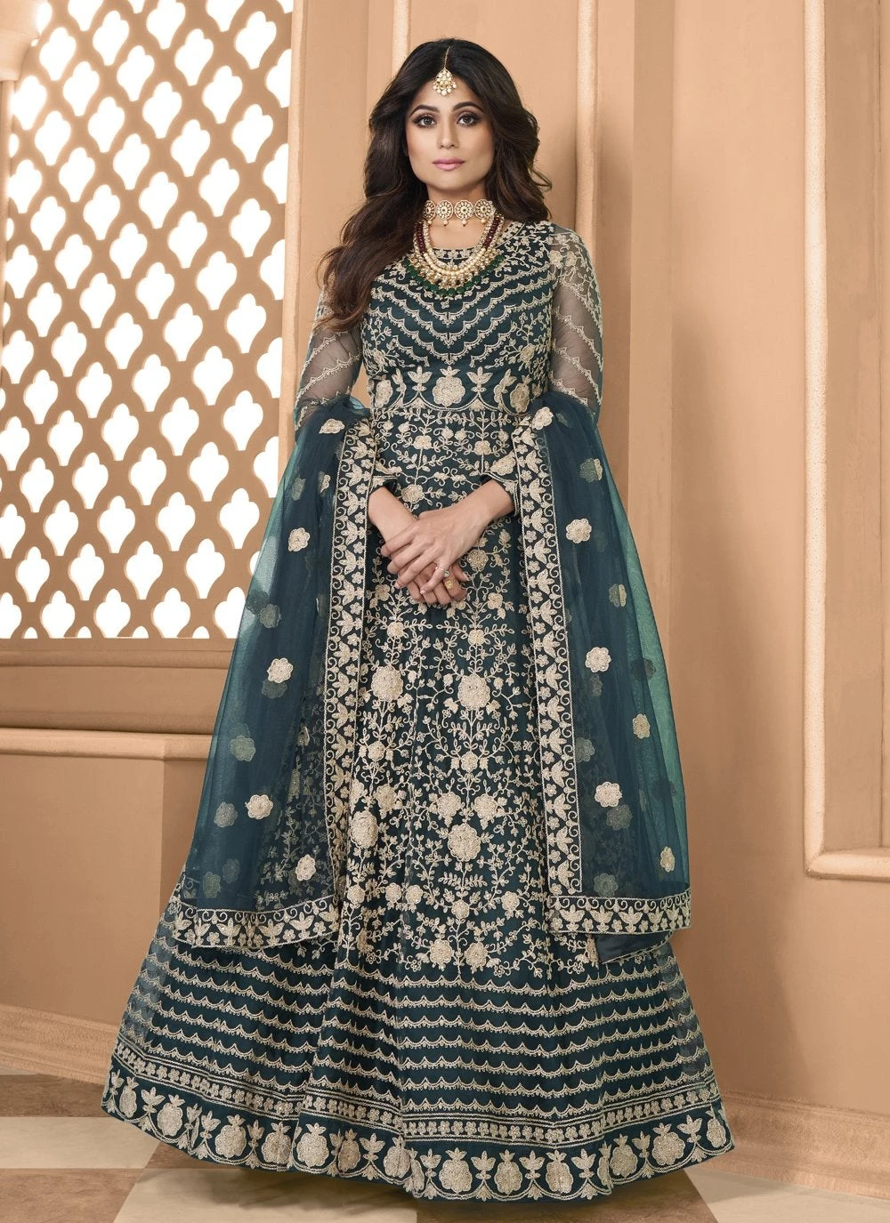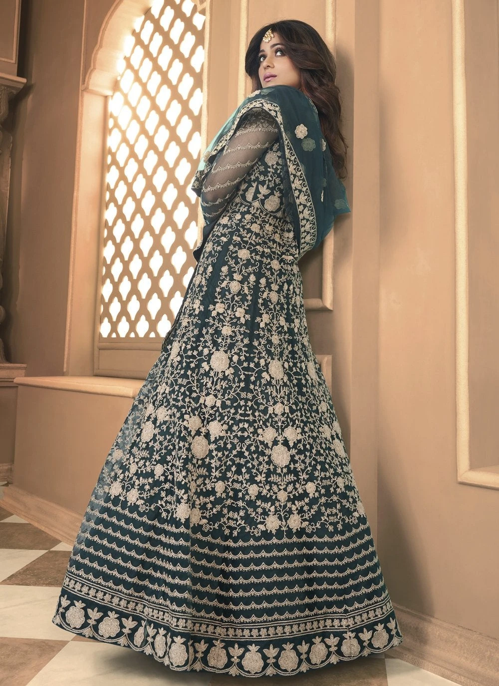 ✪ This Anarkali dress can be stitched with maximum bust size of 42 inches only.- Top: Butterfly Net Embroidery
