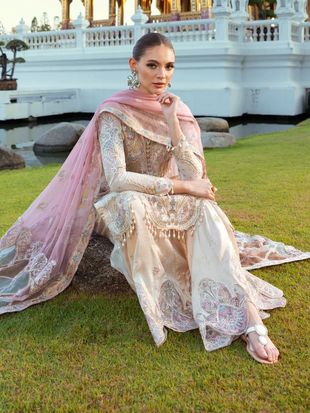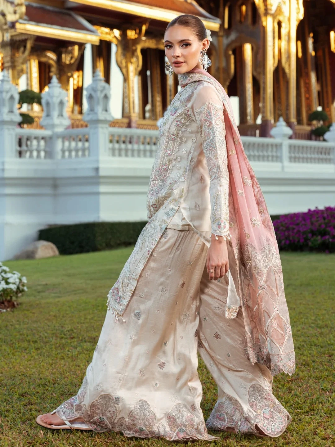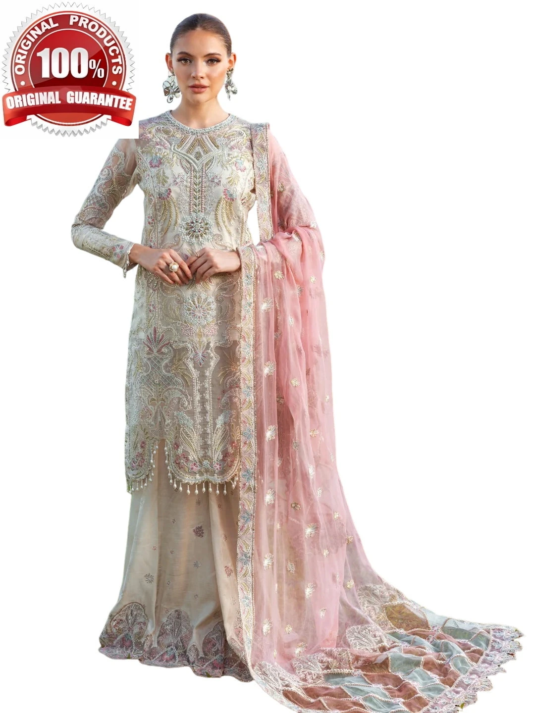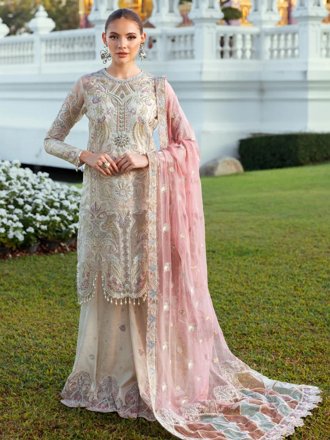 - Top: Designer Embroidered Premium Organza