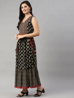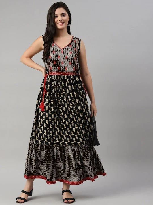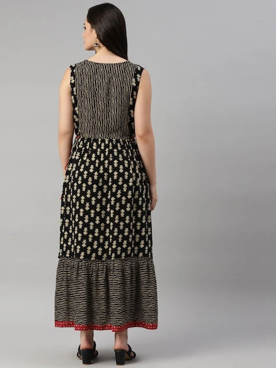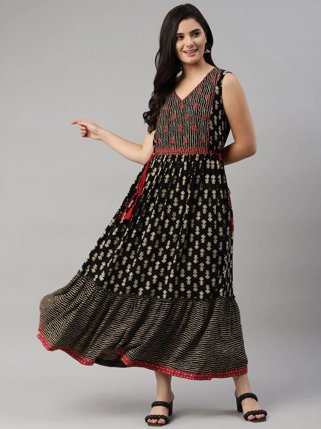 - Fabric: Ethnic Motif Printed A-Line Ethnic Dress in Viscose