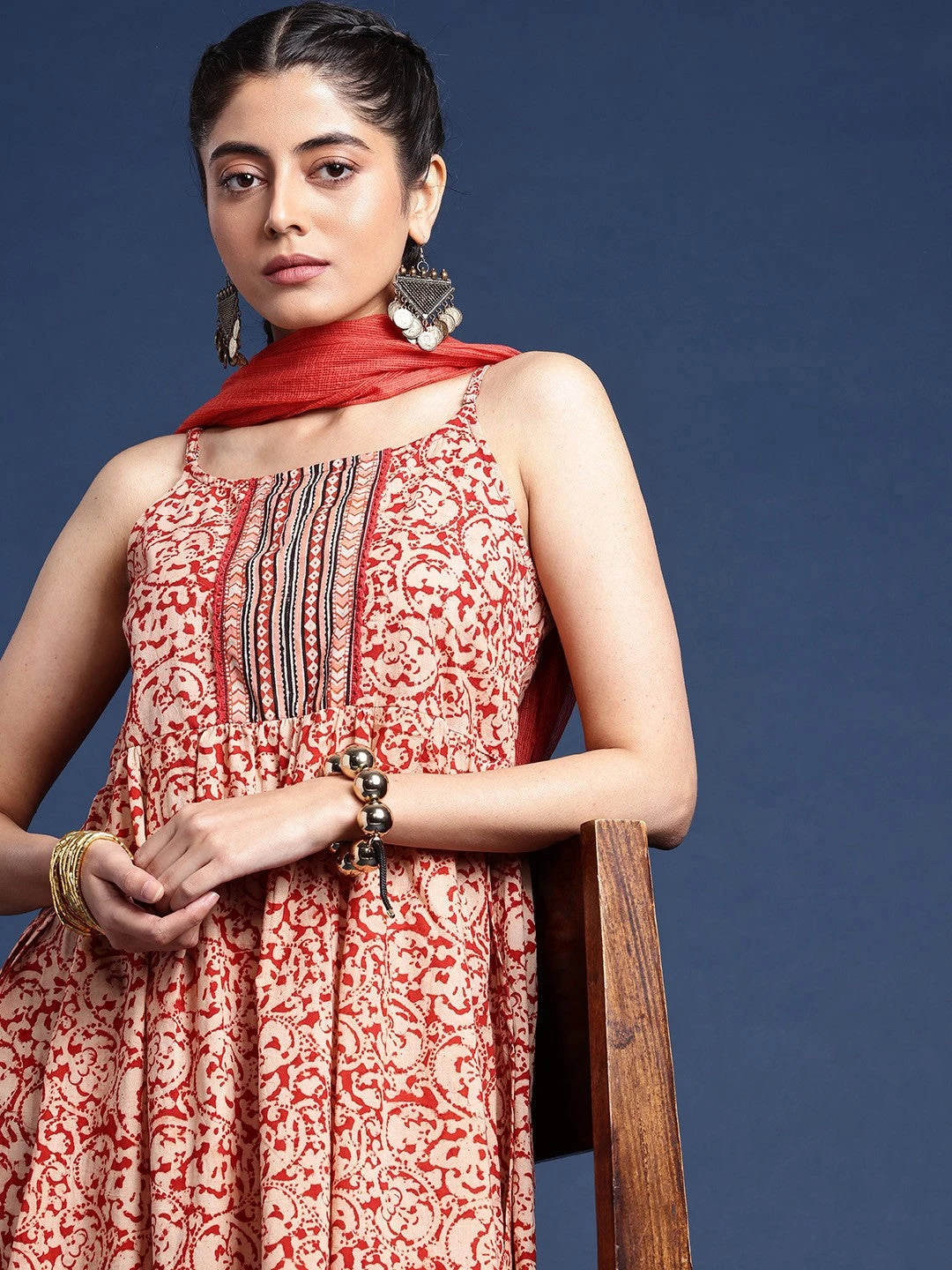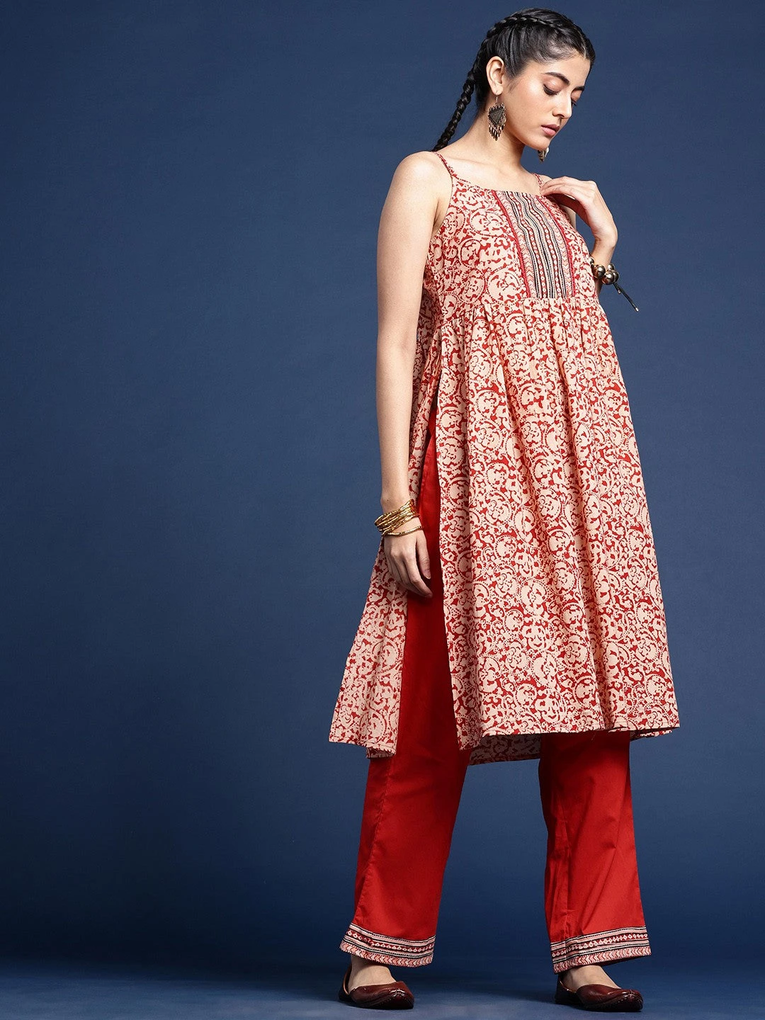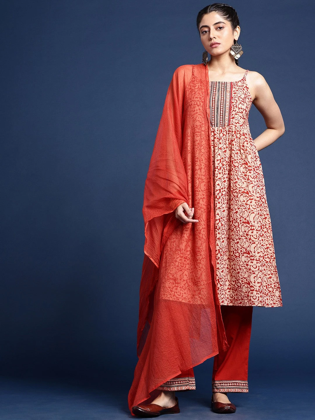 - Fabric: Ethnic Motifs Regular Kalamkari Cotton Kurta Set
