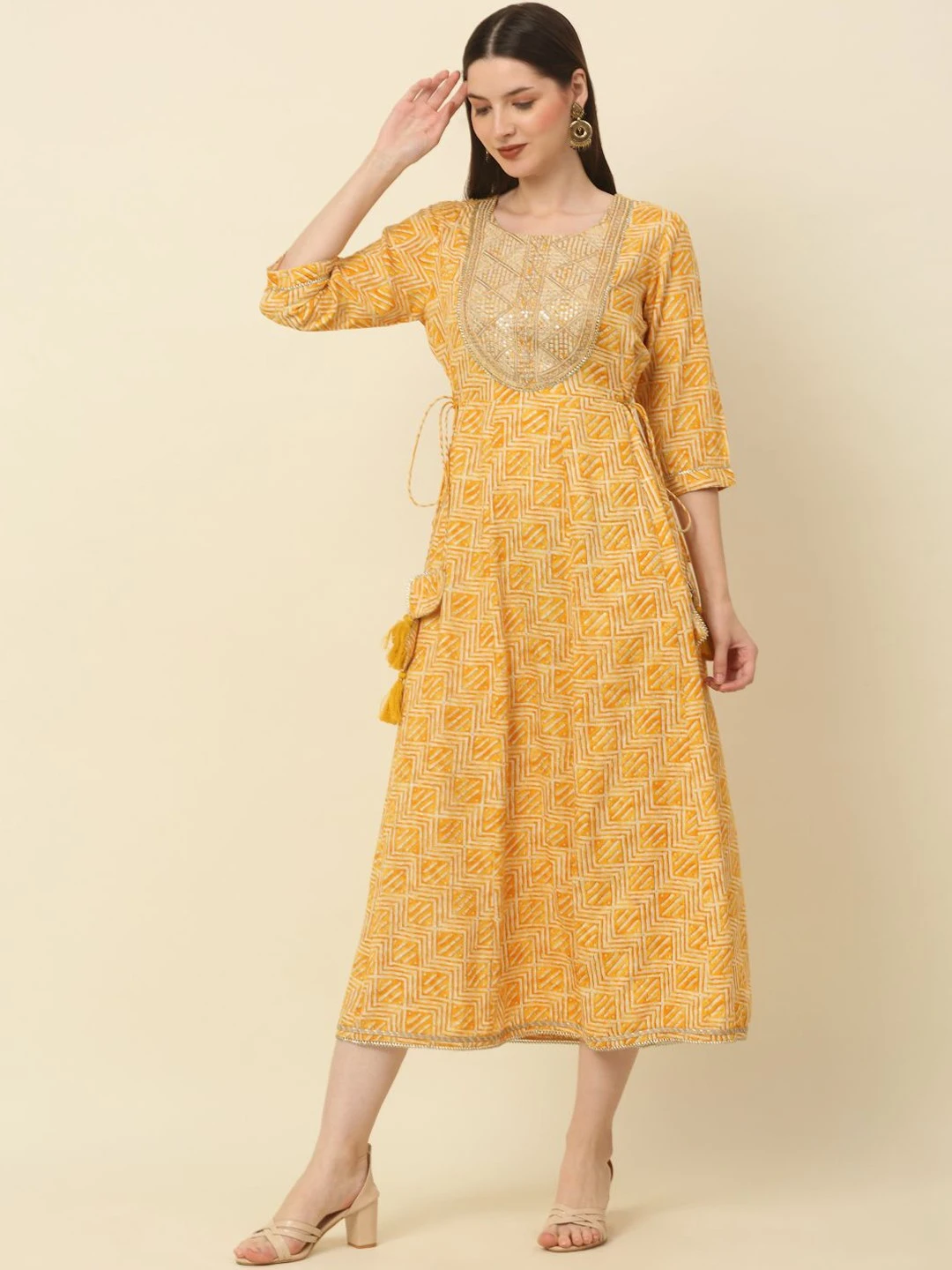 - Fabric: Abstract Printed Fit and Flare Ethnic in Viscose Rayon Kurti