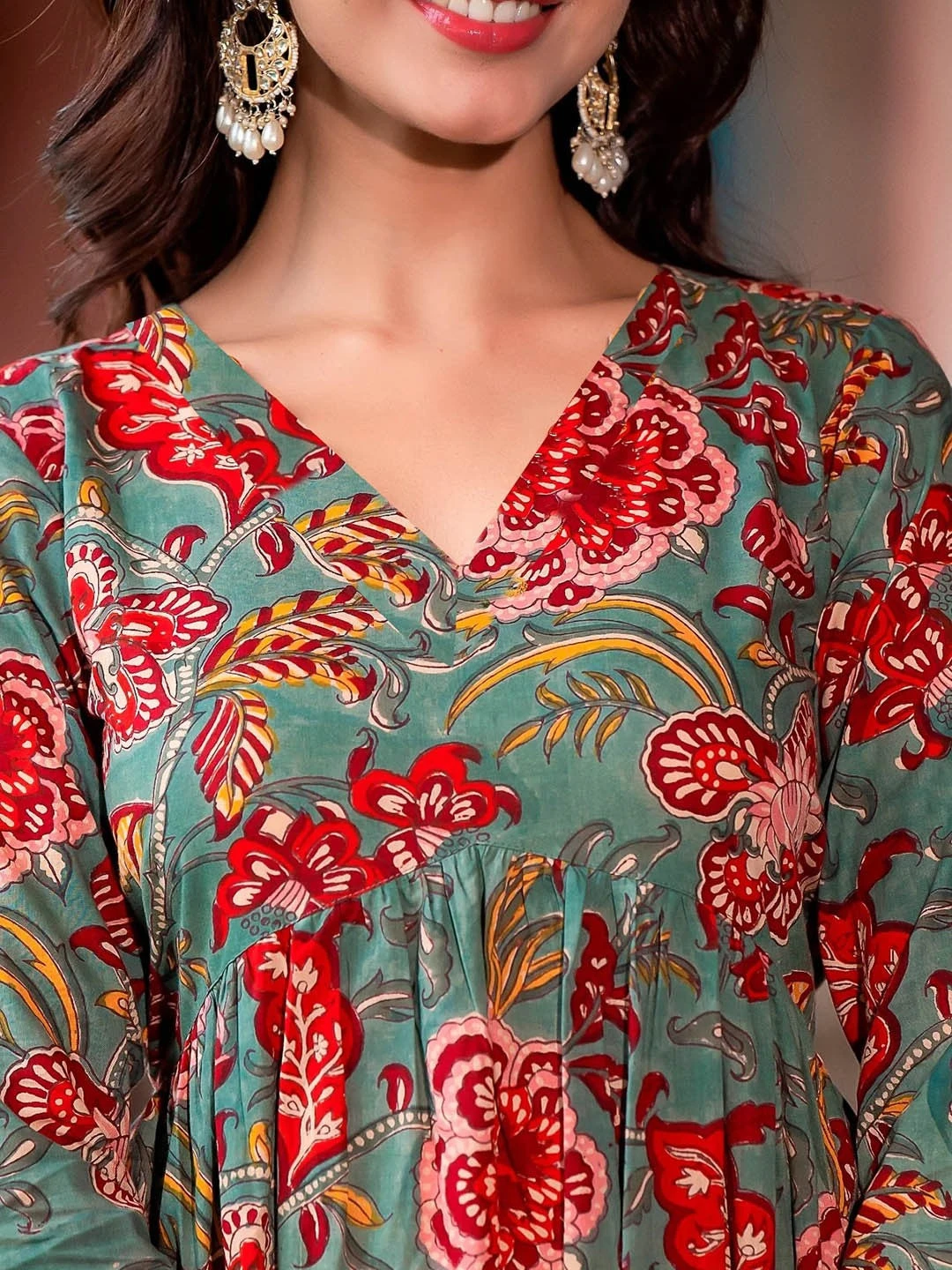 - Fabric: Floral Printed Empire in Viscose Rayon Kurta Set