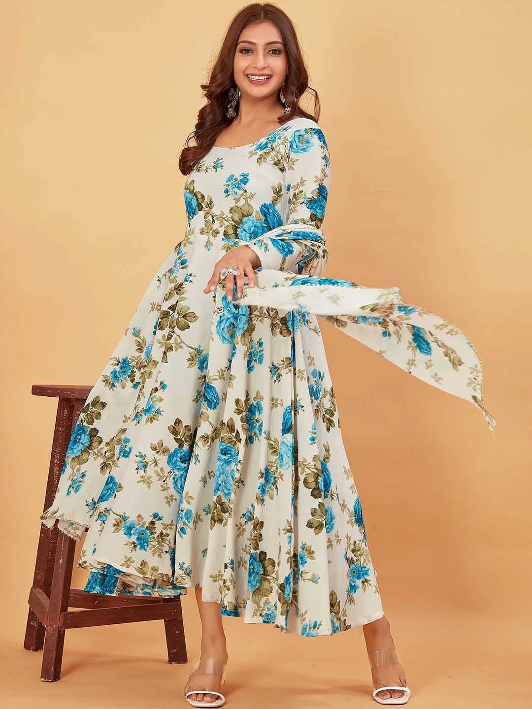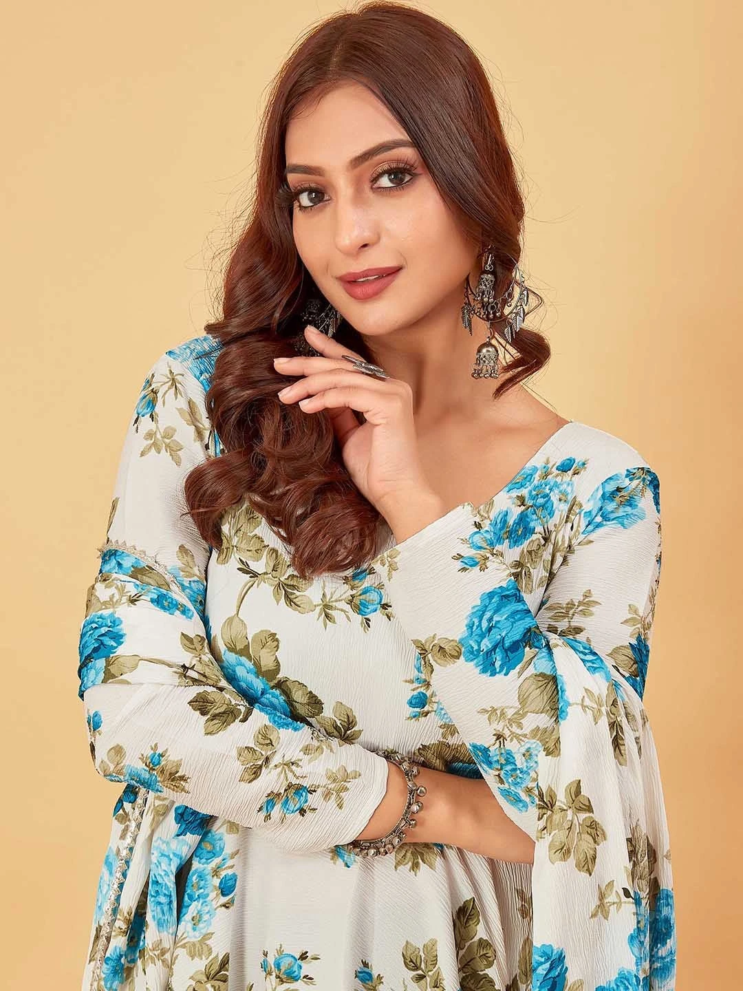 - Fabric: Floral Printed Fit & Flare in Georgette Kurti with dupatta