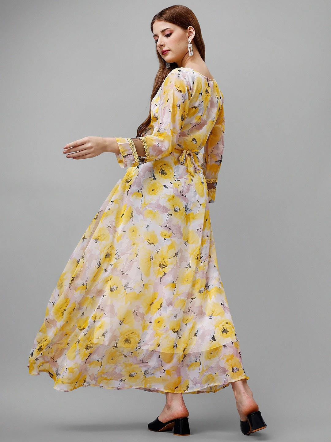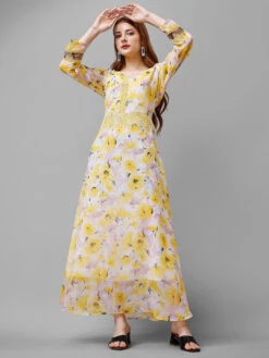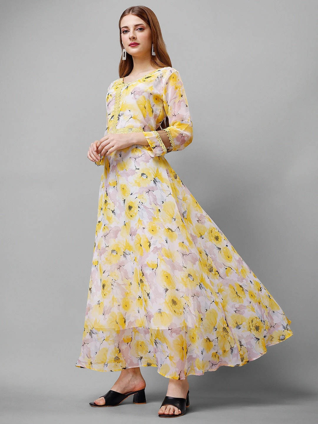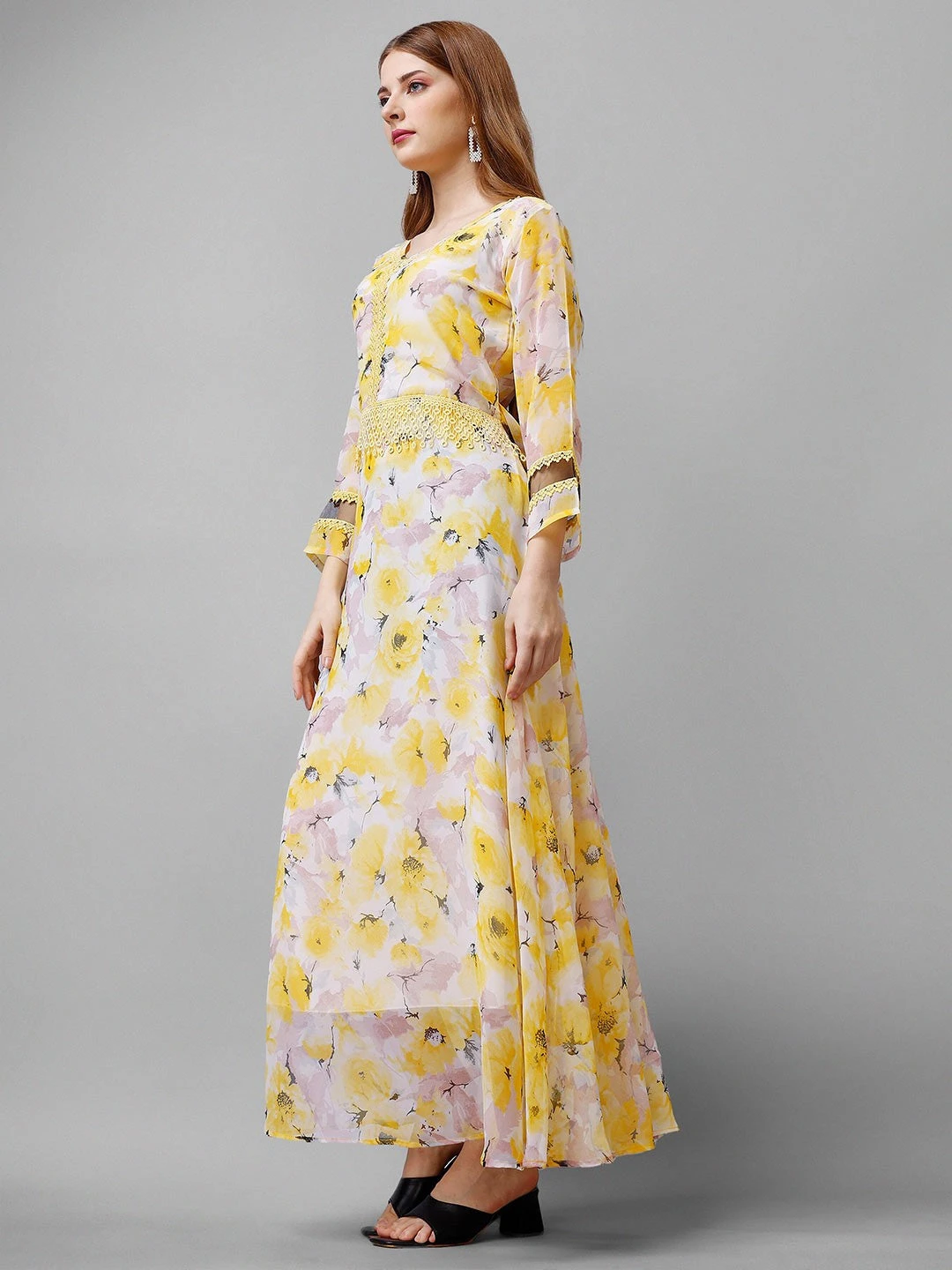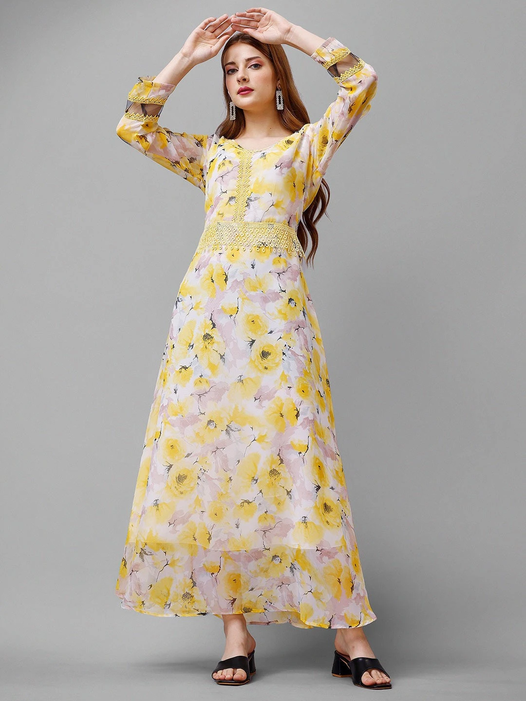 - Fabric: Floral Lace Inserts in Georgette Kurti
