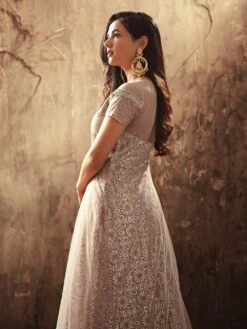 ✪ This Anarkali dress can be stitched with maximum bust size of 42 inches only.- Top: Embroidered Net