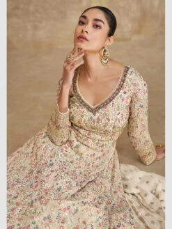 ✪ This Anarkali dress can be stitched with maximum bust size of 42 inches only.- Top: Real Georgette Heavy Embroidery